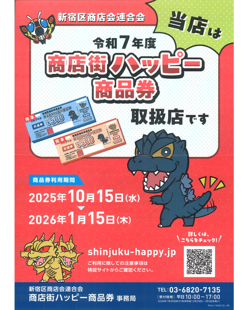 10/15(水)~ 四ツ谷店にて「新宿区商店会連合会 商店街ハッピー商品券」ご利用可能です!