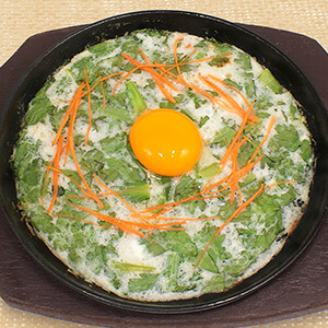 期間限定!旬野菜を使った夜メニューです。今月は、温かいうちに!香り豊かな春菊「春菊とろろの鉄板焼き
