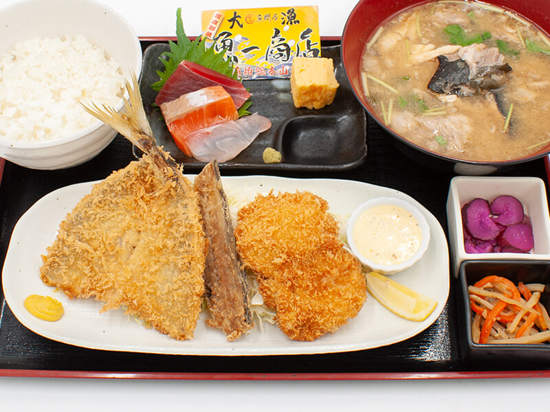 アジフライ&ホタテフライ定食